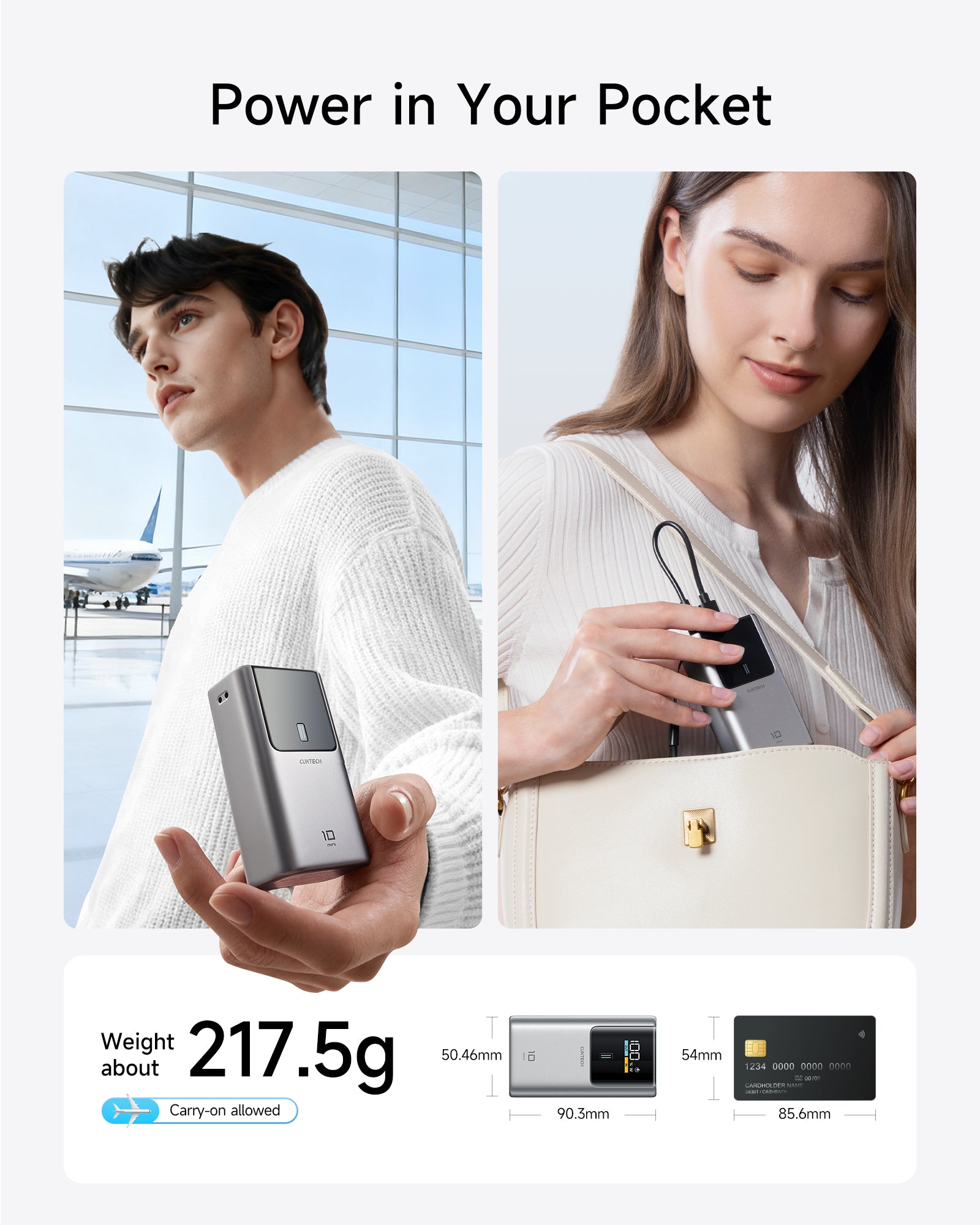 Mini Size, Max Power: Equipped with a 10,000mAh high-capacity battery, this power bank is as compact as a pack of tissues and weighs only 0.48 lbs.Perfectly presenting the combination of small size and large capacity.Truly pocket-friendly, this design fits wherever you want to go.